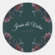 Pegatina Redonda Selva Oscura Verde Elegante Boda Maroon Mauve
