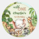 Pegatina Redonda Selva Safari Jungle Animals Wild One 1er cumpleaño