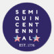 A meaningful sticker for history lovers, educators, veterans, families, and proud Americans marking this once-in-a-lifetime milestone. The design shows bold black typography of the word SEMIQUINCENTENNIAL spread over five lines with two USA stars on the last line. There is CUSTOMIZABLE TEXT which currently reads EST. 1776, which you can PERSONALIZE with your name, family, or other line of text. Also available in white.