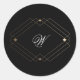 Pegatina Redonda Sencilla Boda Dorada Geométrica Moderna Negra