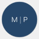 Pegatina Redonda Sencillo Moderno Monograma de Boda Azul Marino