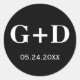Pegatina Redonda Sencillo y elegante boda blanco y negro en monogra