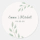 Pegatina Redonda Sencillo y Elegante Verde Salvia Botánico de Boda