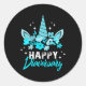 Pegatina Redonda Sensibilización sobre la diabetes: unicornio feliz
