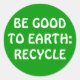 PEGATINA REDONDA SER BUENO CON LA TIERRA:RECICLAJE
