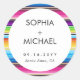 Un conjunto de pegatinas de bodas con estampado de serape redondo y colorido en un estilo abierto y mínimo que recuerda a los colores de la primavera.