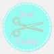 Pegatina Redonda Sew Crafty Aqua Blue Circle con tijeras