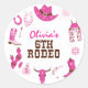 Pegatina Redonda Sexto cumpleaños de Rodeo Rosa Occidental Cowboy