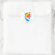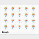 Un bonito hielo afeitado con colores arcoiris, una paja y una cuchara de palos en un cono de rayas azules y blancas sobre un pegatina redondo blanco. ¡Un gran pegatina para los favores de cumpleaños o para las invitaciones a sellar!