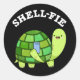 Pegatina Redonda Shell-fie Funny Tortoise Selfie Pun Dark BG