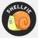 Pegatina Redonda Shellfie Funny Snail Selfie Pun Dark BG