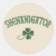 Un Shenanigator es un instigador de travesuras. Texto verde con un shamrock, en camisetas, tarjetas, franja de regalo de novedad.