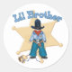 Cute Sheriff pequeño hermano con palo de caballo parado frente a una gran estrella del sheriff de oro, el texto dice 'Hermano Medio'. Tiene diseños de hermanos mayores y hermanos medios. Hermanos hermanos kewlkids hermanitos y hermanos hermanos lindos