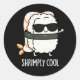 Pegatina Redonda Shrimply Guay Funny Shrimp Sushi Pun Dark BG