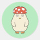 Una chica regordeta, sin impresionar, vestida como hongo. ¡Qué lindo, gracioso y un poco gruñón!