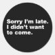 Pegatina Redonda Siento llegar tarde. No quería venir