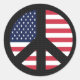 Pegatina Redonda Signo de paz con bandera estadounidense