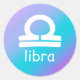 Un conjunto de pegatinas redondos con el símbolo de astrología de Libra sobre un fondo de gradiente azul y púrpura. Para alguien cuyo cumpleaños es entre el 23 de septiembre y el 22 de octubre.