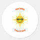 Una imagen del sol sonriendo usando gafas de sol con el texto que dice seguir sonriendo sigue brillando.