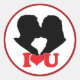 Pegatina Redonda Silhouette de Couple Kissing con "I ♥ U"