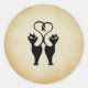 Pegatina Redonda Silhouette de dos gatos