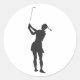 Pegatina Redonda Silhouette de una mujer jugando al golf