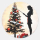 Pegatina Redonda Silhouette femenina con árbol de Navidad adornado