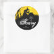 Una bruja malvada y su caldero, un murciélago negro, una valla de piquete y una silueta de árbol desnudo contra un cielo espeluznante estos pegatinas de la fiesta de Halloween vienen en dos tamaños y varias formas. Las palabras "Comer, beber y tener miedo" aparecen y tu nombre o deja esa sección en blanco. COINCIDIENDO elementos de nuestra colección.
