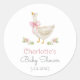 Pegatina Redonda Silly Goose en el suelto Baby Shower de Bow Rosado