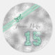 Pegatina Redonda Silver Brocade Decimoquinto cumpleaños Mint Green