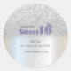Pegatina Redonda Silver Glitter Bokeh Sweet 16 Crown