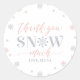 Este lindo pegatina de agradecimiento presenta bonitos copos de nieve y tipografía elegante "muchas gracias NIEVE" en rosa de coral y plata. Perfecto para una fiesta temática de invierno. En mi tienda BaraBomDesign hay disponibles invitaciones y suministros para fiestas coincidentes.