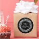 Las estrellas, círculos y puntos plateados que rodean las palabras "Feliz Navidad" en pegatinas redondos negros son perfectos para dar regalos de vacaciones y más. COINCIDIENDO con los artículos de nuestra tienda.