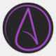 Pegatina Redonda Símbolo ateo: morado sobre negro