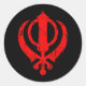 Pegatina Redonda Símbolo chikh khanda rojo roto en negro