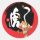 Pegatina Redonda Símbolo chino Kung Fu Tiger rojo