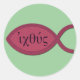 Pegatina Redonda Símbolo cristiano de pescado IXOYE - pergamino roj