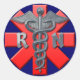 Regalos para Enfermeras Registradas, utilizando un caduceus con las letras R y N con fondo medico rojo.