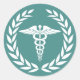Pegatina Redonda Símbolo de Enfermería médica Caduceus Verde azulad
