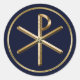 Pegatina Redonda Símbolo de Gold Chi-Rho en azul oscuro