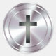 Pegatina Redonda Símbolo de la cruz cristiana - plata cromada