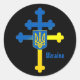 Pegatina Redonda Símbolo de la Cruz de Ucrania y cruz de Lorena