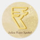 Pegatina Redonda Símbolo de la rupia india amarilla con mucho diner