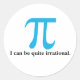 Los pegatinas humorísticos tienen un gran símbolo azul de pi con una graciosa cita: "Puedo ser bastante irracional".