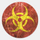 Este diseño rasgado y desgastado presenta el símbolo de riesgo biológico para sustancias biológicas peligrosas y peligrosas. El símbolo de advertencia internacional consiste en tres círculos abiertos interrelacionados con un cuarto círculo situado detrás. Este diseño agresivo es un símbolo popular que ha sido asociado en la cultura pop con el apocalipsis zombie y la infección masiva.
