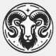 Un arte vectorial Aries celestial blanco y negro como símbolo de ariete.