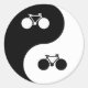El cartel zen de equilibrio de yin-yang con una bicicleta negra en la mitad blanca y una bicicleta blanca en el negro. El ciclismo es bueno para el cuerpo y la mente