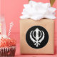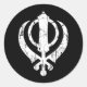 Pegatina Redonda Símbolo khanda blanco roto en negro