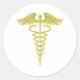 Pegatina Redonda Símbolo médico de oro de Caduceus