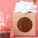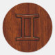 Pegatina Redonda Símbolo moderno gemini zodiaco en caoba como impri